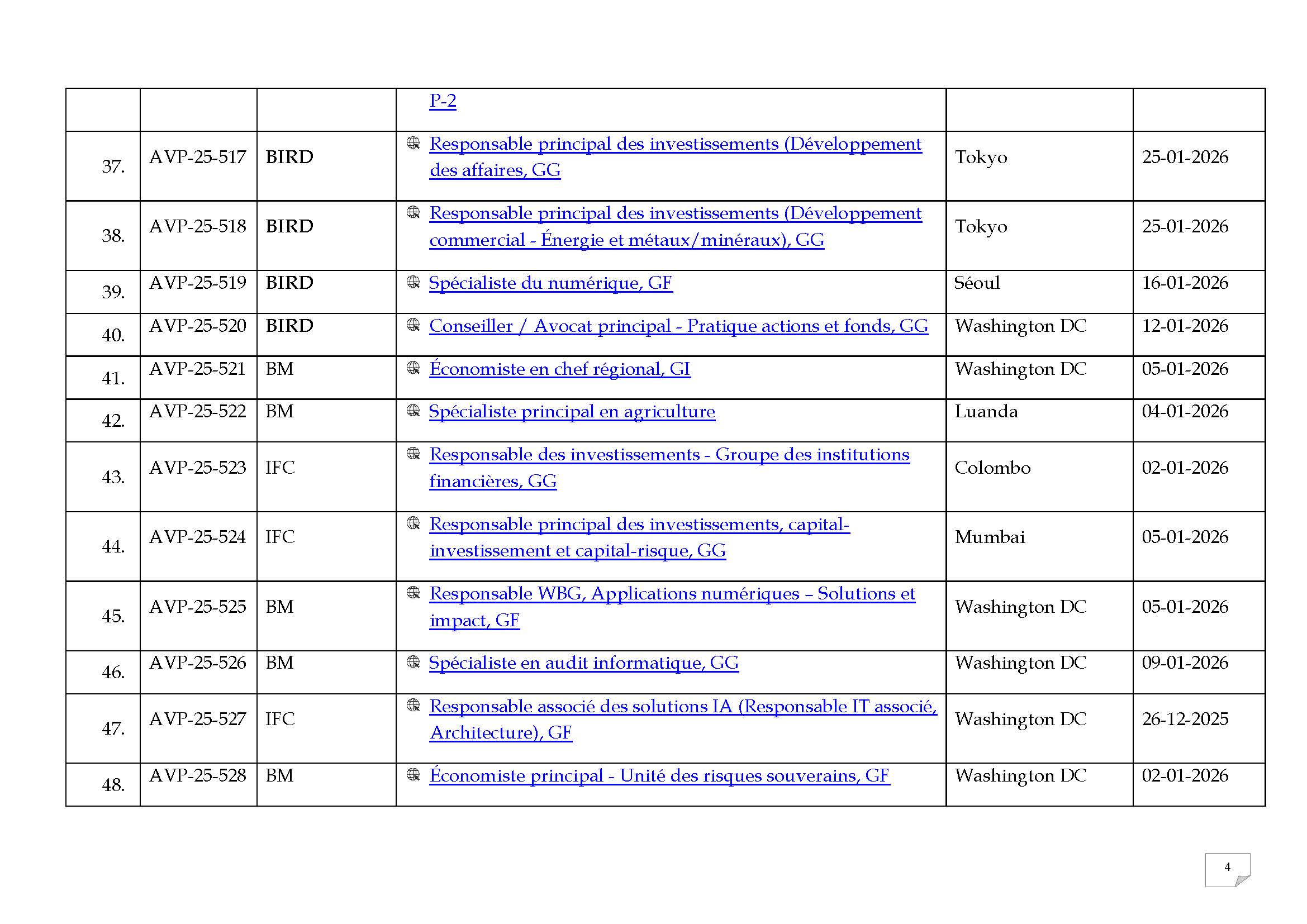 | 50. | AVP-25-530 | BM | Spécialiste du changement climatique, GF | Washington DC | 01-01-2026 |