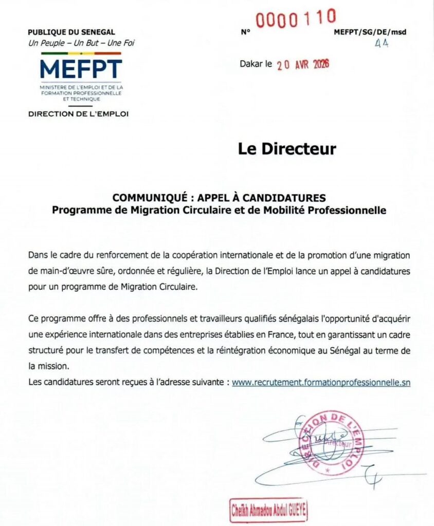 Pour toute information complémentaire, veuillez contacter le numéro vert gratuit de l’ANPE : 8384.