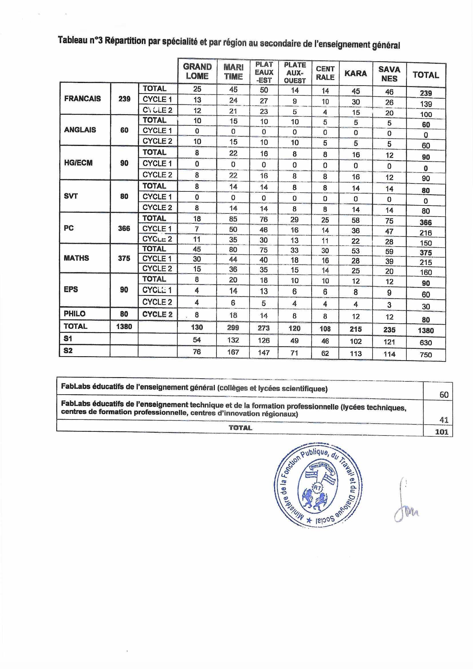 INTÉGRALITÉ DU COMMUNIQUÉ SUR LE CONCOURS DE LA FONCTION PUBLIQUE POUR LE RECRUTEMENT DES ENSEIGNANTS AU TOGO