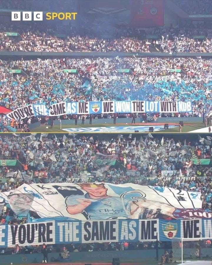 Les supporters de Manchester City ont dévoilé cette bannière lors de la finale de la FA Cup 2025, qui s’est tenue au stade de Wembley face à Crystal Palace.