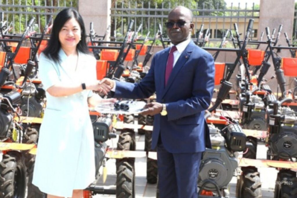 Le don, remis par l’ambassadrice de Chine, Wang Min, est composé de motoculteurs accompagnés de leurs accessoires, ainsi que de bottes et de chapeaux. Il vise à renforcer la mécanisation des activités agricoles et à améliorer l’efficacité du travail des producteurs, tout en contribuant à l’augmentation des rendements et à de meilleures conditions d’exploitation.