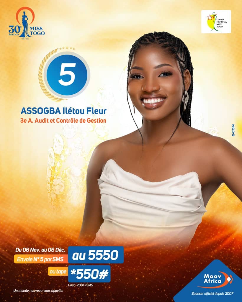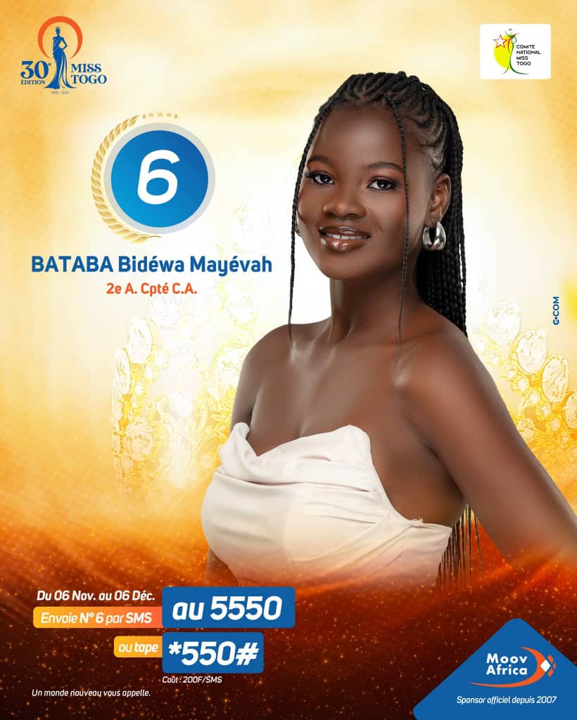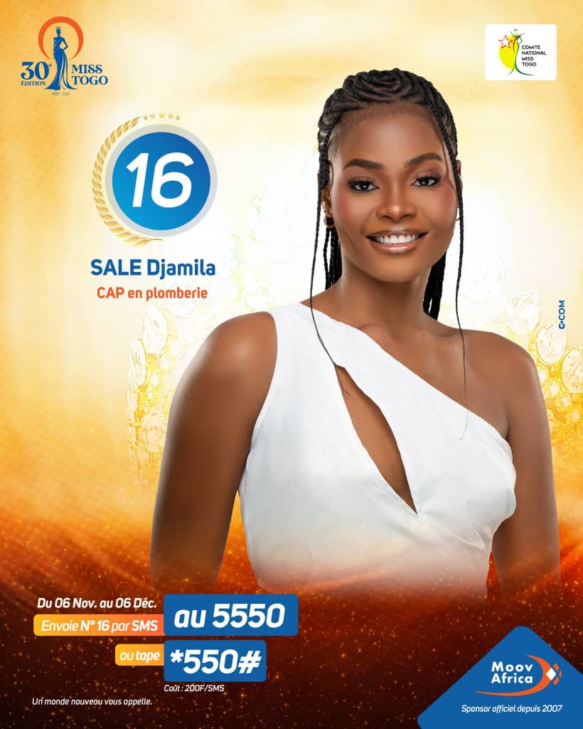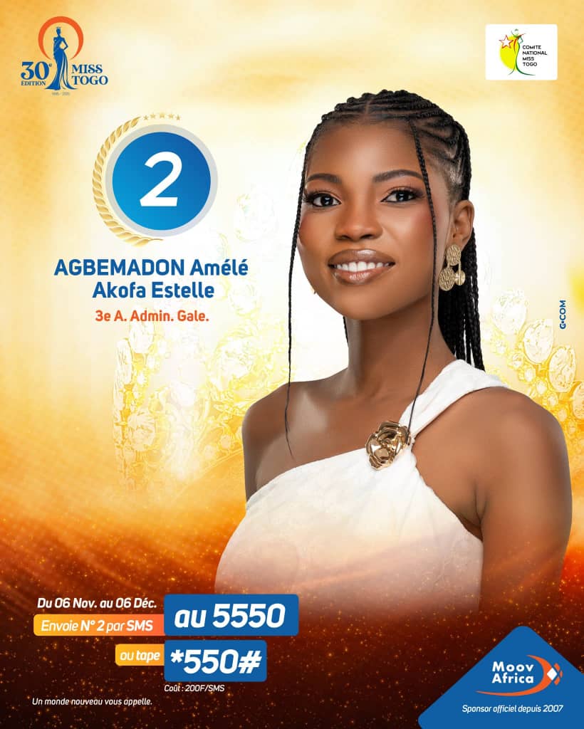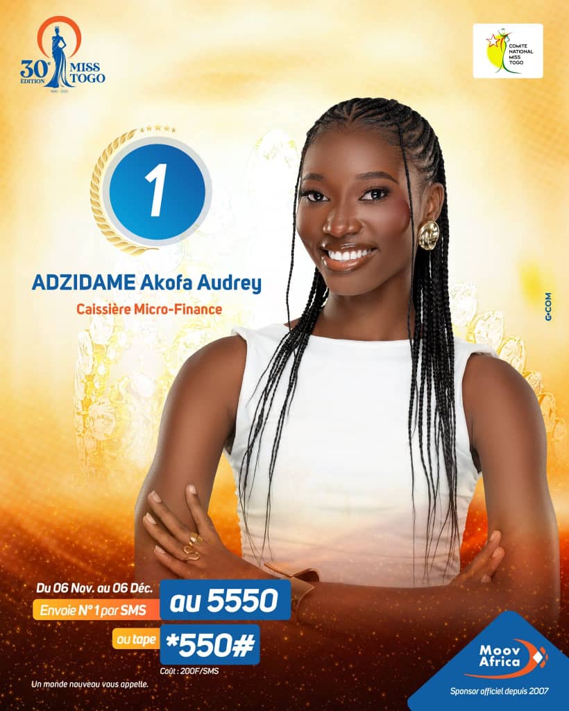 Elle bénéficiera également d’un financement de 10 millions de FCFA pour la réalisation de son projet social, offert par Moov Africa Togo, ainsi qu’une enveloppe de 5 millions de FCFA remise par la Société des Postes du Togo et le Comité National Miss Togo.