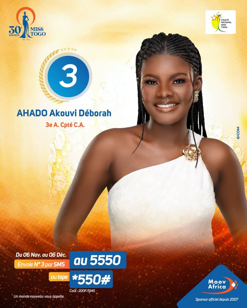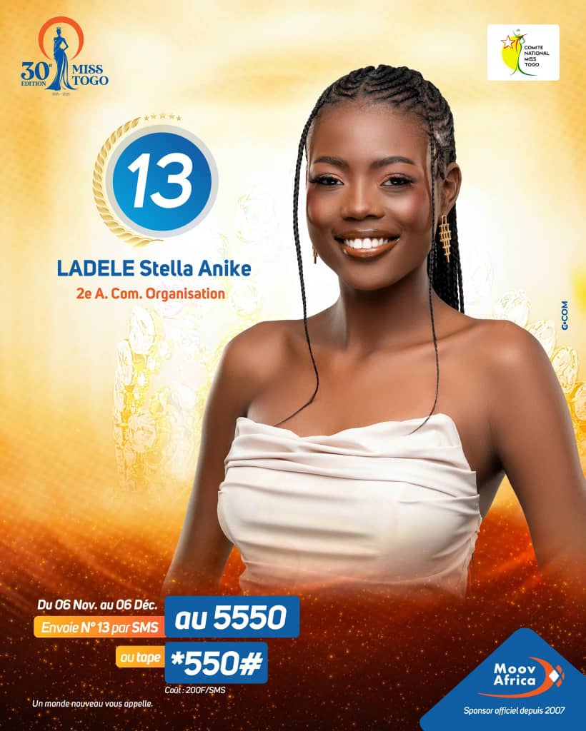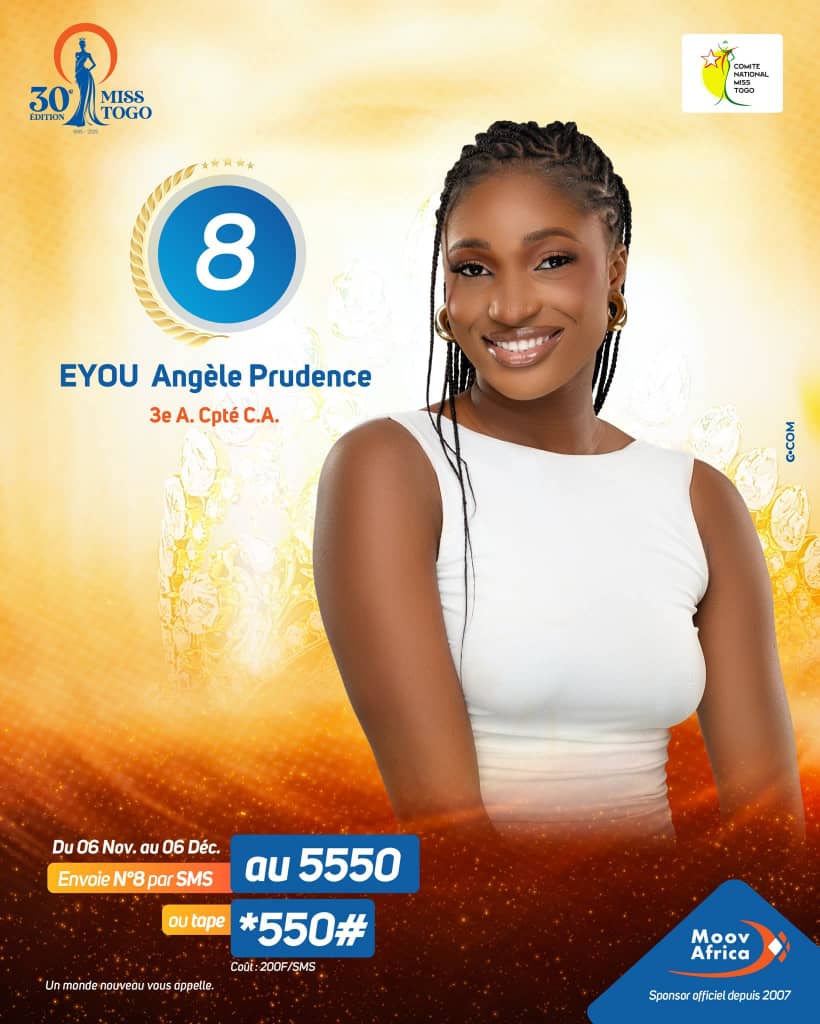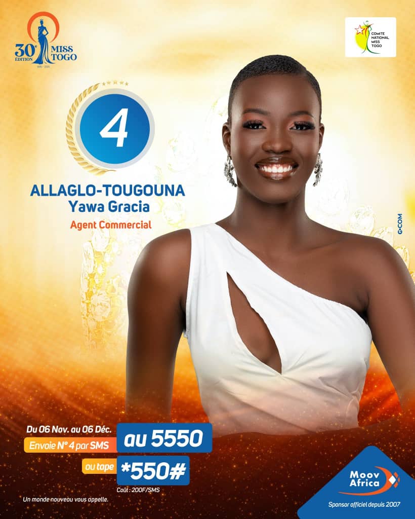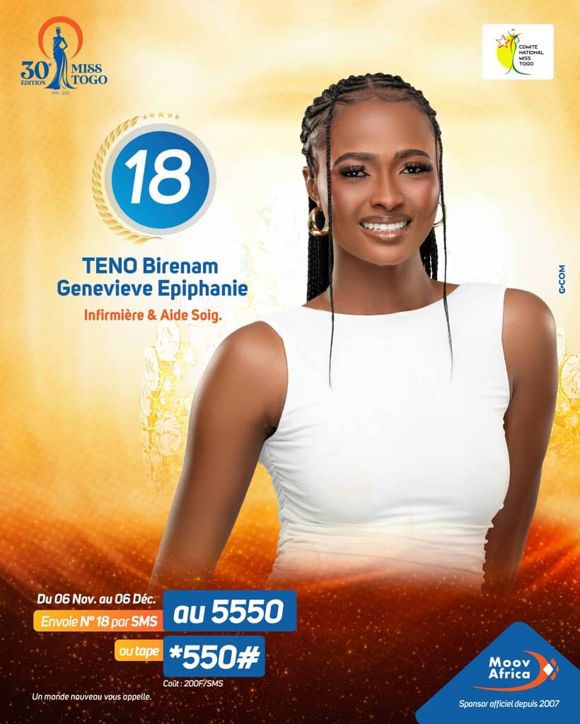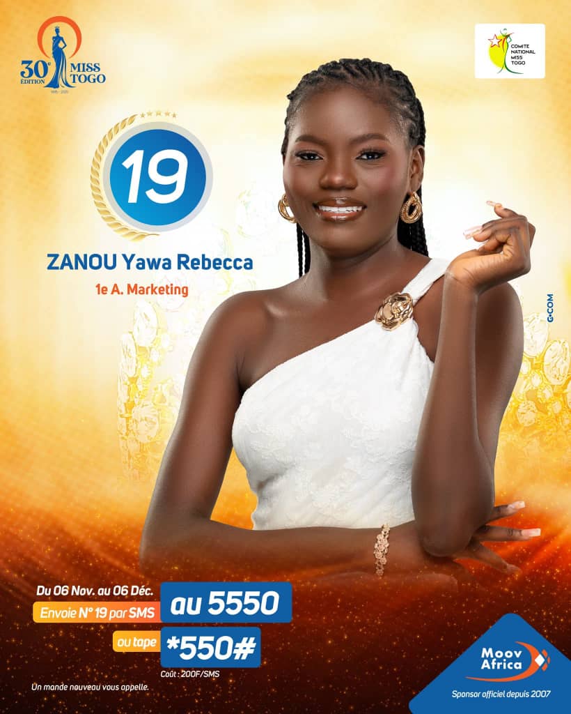 Elle bénéficiera également d’un financement de 10 millions de FCFA pour la réalisation de son projet social, offert par Moov Africa Togo, ainsi qu’une enveloppe de 5 millions de FCFA remise par la Société des Postes du Togo et le Comité National Miss Togo.