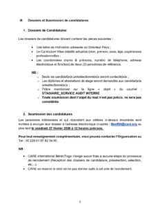 Pour tout renseignement complémentaire, vous pouvez contacter l’Organisation au Tel : 00 229 01 97 82 54 60.