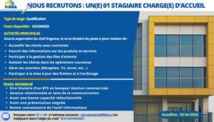 Vous êtes titulaire d’un BTS en Banque ou Gestion Commerciale et souhaitez acquérir une expérience professionnelle au sein d’une institution structurée ?