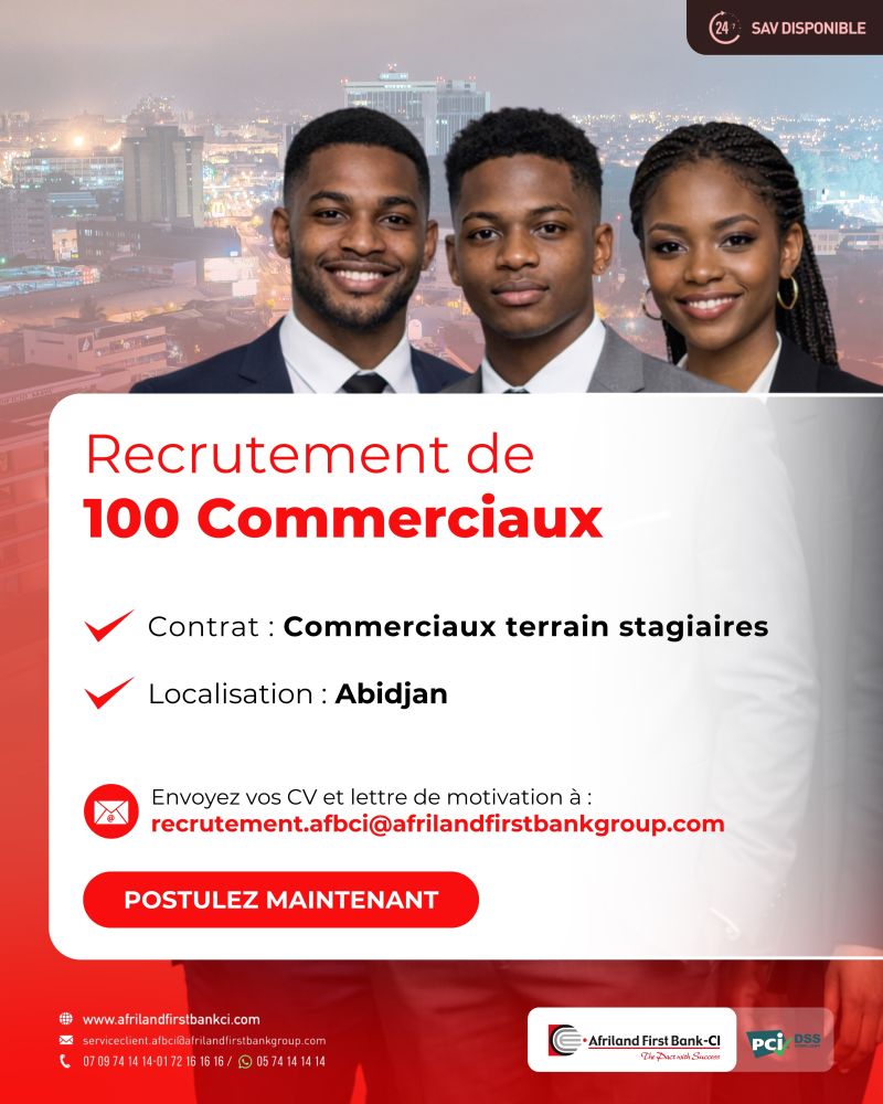 C’est le moment ! Afriland First Bank Côte d’Ivoire recrute pour 100 postes de :