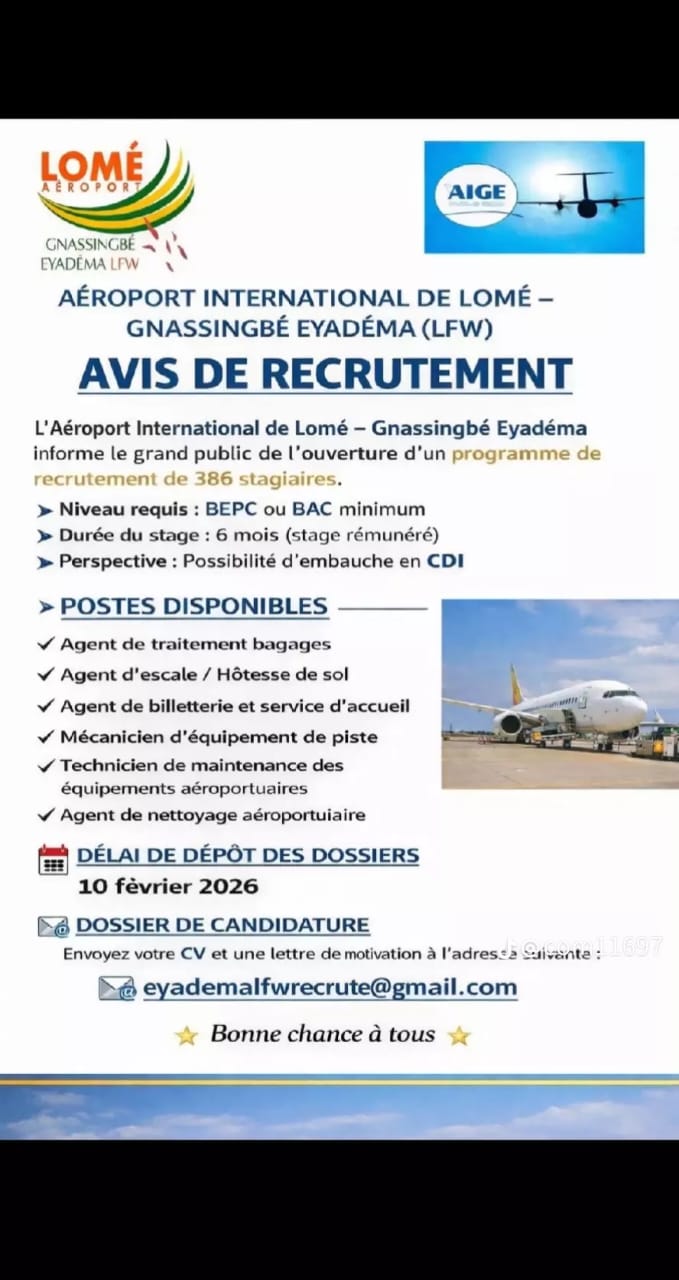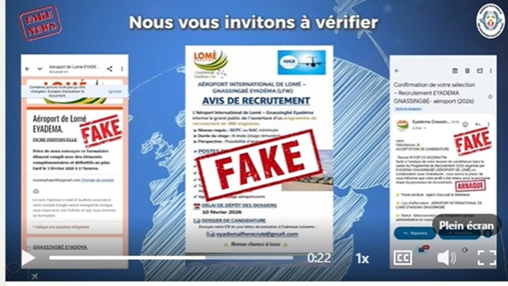 Au Togo, une fausse annonce de recrutement de 386 stagiaires à l’aéroport international « Gnassingbé Eyadema » de Lomé circule sur les réseaux sociaux.