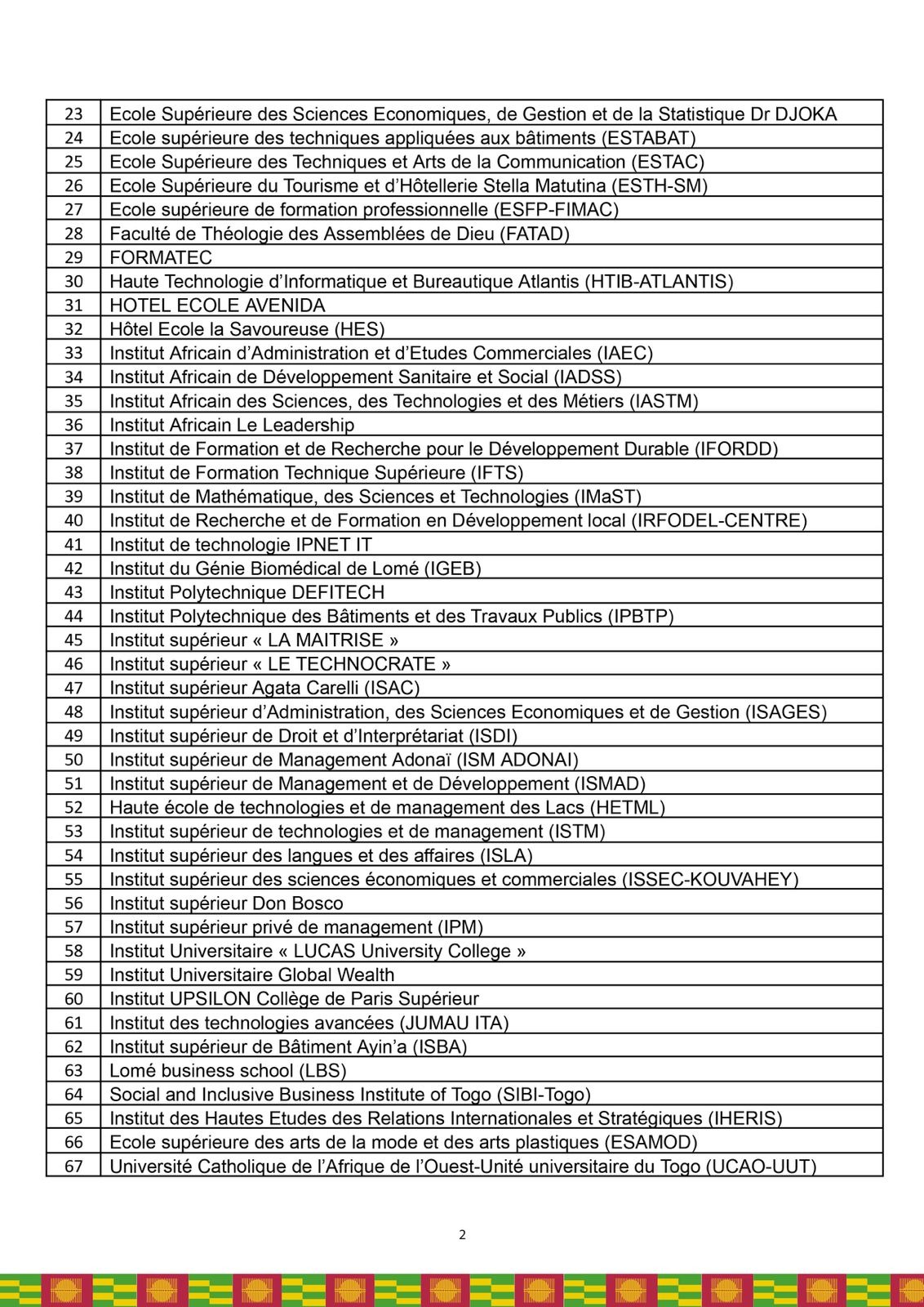 À quelques semaines de la rentrée universitaire pour l’année académique 2025-2026, le gouvernement togolais a publié la liste des établissements reconnus.